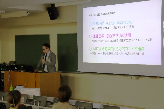 当日は、西川学長によるご挨拶に続き、民谷助教より本実習の特色についてご説明いただきました。その後、医学科学生3名が実習の成果を報告。患者の生活背景への理解、多職種連携の重要性、終末期医療など、実習を通じて得た学びや気づきが語られました。また、今後の抱負も述べられ、学生の成長が感じられる内容となりました。