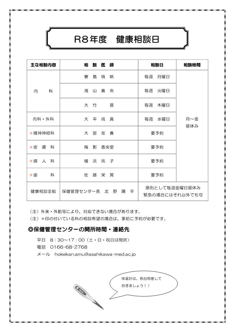 メール:hokekan.amu*asahikawa-med.ac.jp