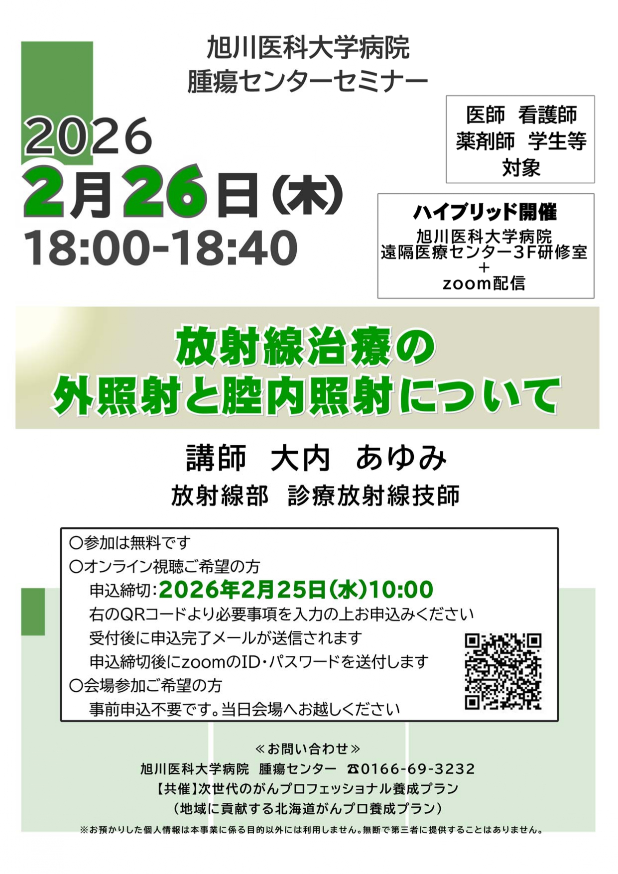 腫瘍センターセミナーのお知らせ(2/26開催)